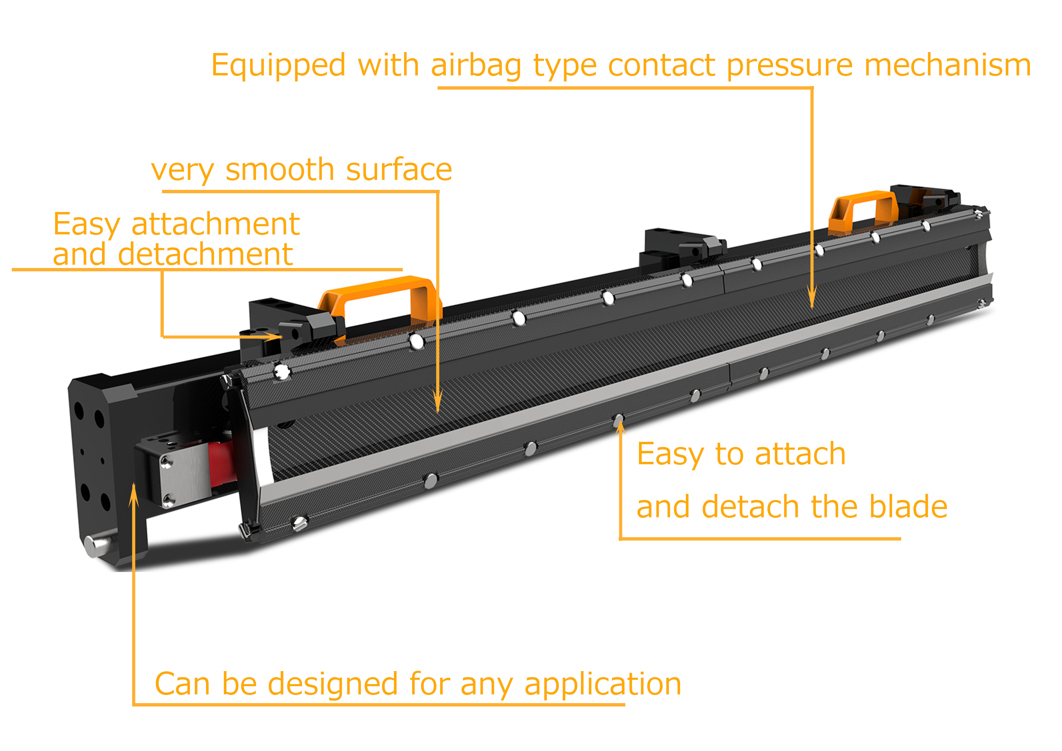 The proprietary built-in airbag crossbar system ensures uniform doctor blade pressure without deviation.